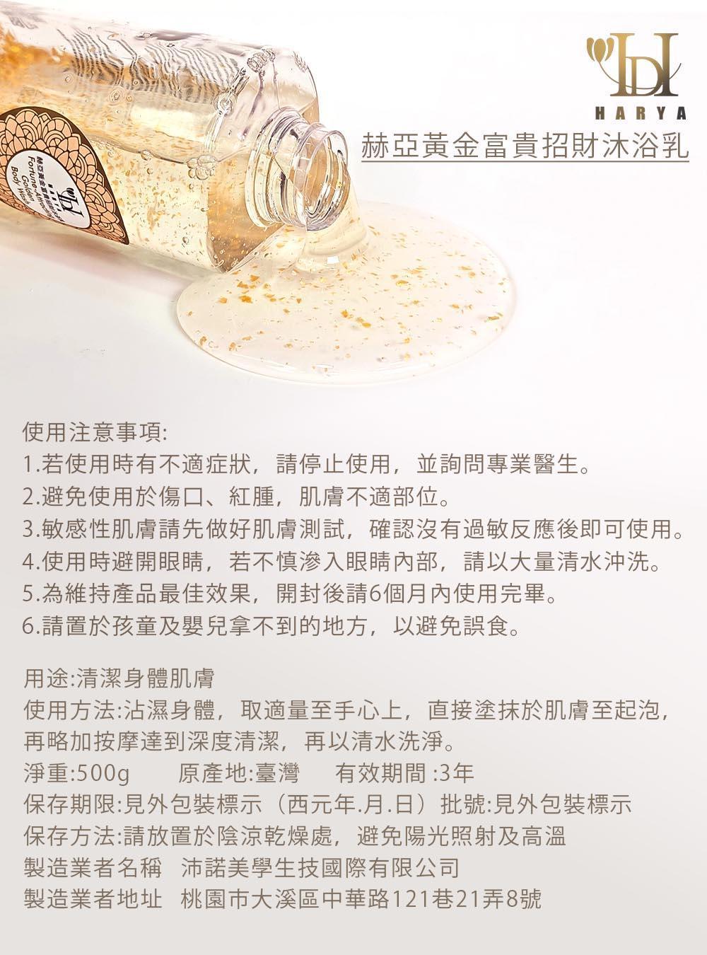 Harya-赫亞黃金富貴招財沐浴乳/500g/添加ECOCERT有機認證成分,提供肌膚保濕,舒緩調理肌膚粗糙的困擾。