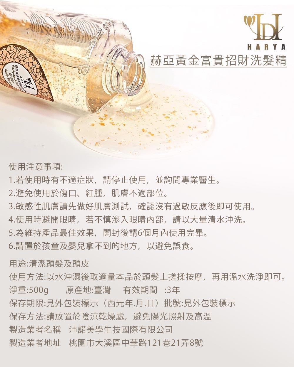 商品詳情 Harya-赫亞黃金富貴招財洗髮精/500g/添加ECOCERT有機認證成分,金箔精華養護,洗出蓬鬆柔順光澤髮/去除頭皮及頭髮油味及異味,保濕滋潤,修護受損髮質減少斷裂,使頭髮恢復活力光彩。 TWD $1,880 ~ 5,640 TWD $990 ~ 1,980