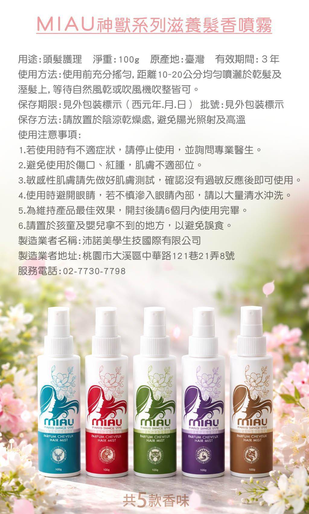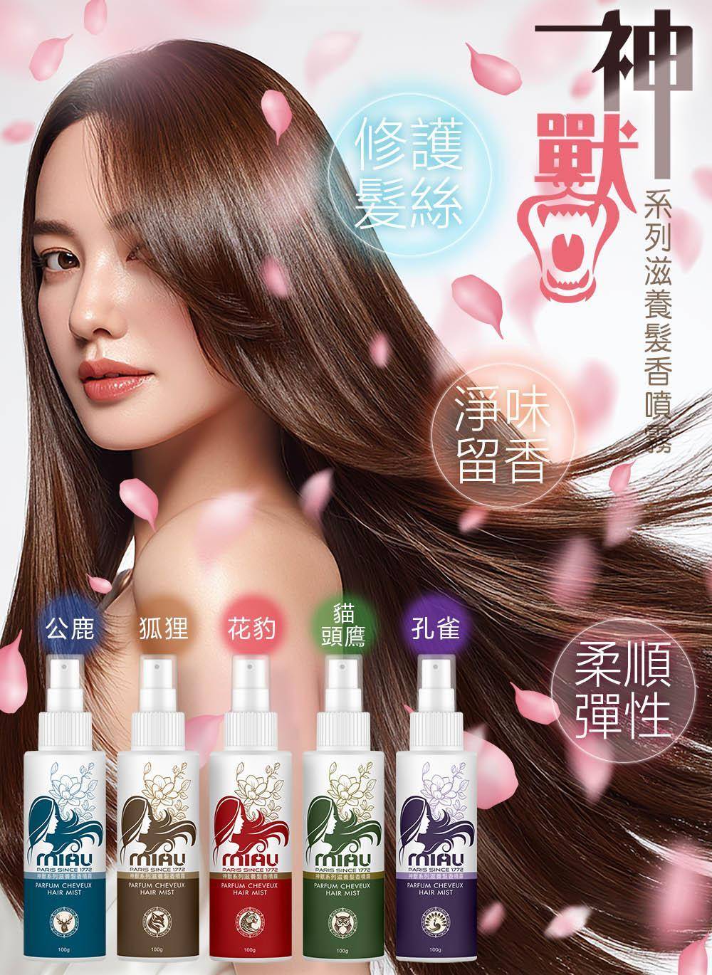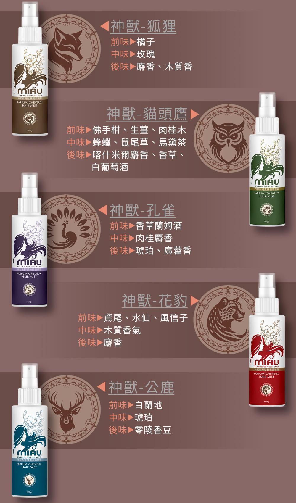 MIAU-神獸系列滋養髮香噴霧/隨身瓶100g/清新去味同時保濕修護、蓬鬆亮澤/【狐狸/貓頭鷹/孔雀/花豹/公鹿】共五款